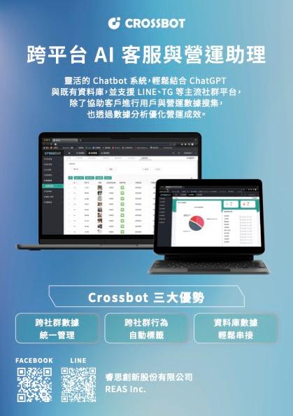 Crossbot AI智能聊天客服機器人可成為企業的好管家,結合Chat GPT功能第一時間透過社群回覆客戶,解決客戶即時詢問的問題,也能同步透過聊天記錄客戶的資訊,透過標籤分眾的方式,對於客戶進行再行銷。