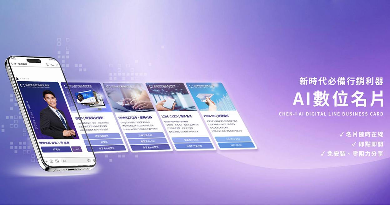 誠翊資訊的「 AI數位名片」是一款以數位名片為核心的雲端工具,提供線上名片製作、 雲端即時更新、一鍵分享及跨平台應用功能,協助店家取代傳統紙本名片,降低印刷成本並避免資訊過時或遺失。 平台同時具備互動追蹤與數據回饋,讓業者能掌握交流後的人脈觸及與互動狀況,進而累積可管理的商脈資源。 業者能展現專業形象,亦能有效提升商務交流效率與市場拓展力,成為服務業數位轉型的重要工具。
