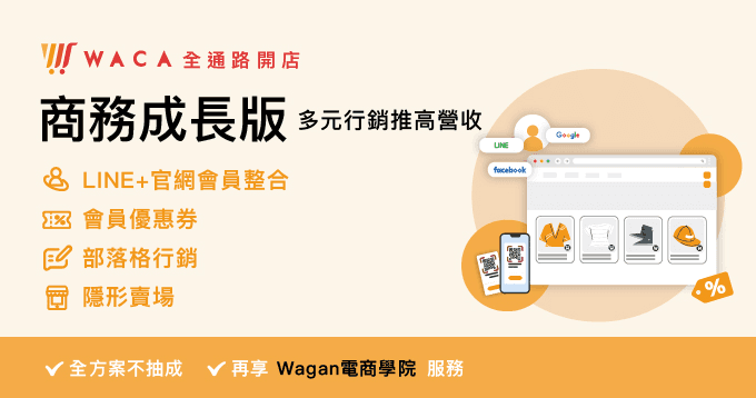 WACA 商務成長版適合中小微商家,幫助經營官網、增加訂單與提升營收。提供多元行銷工具、基礎會員管理與分析,以及導流功能,提升轉化率與銷售效率,高性價比,助品牌穩健成長。