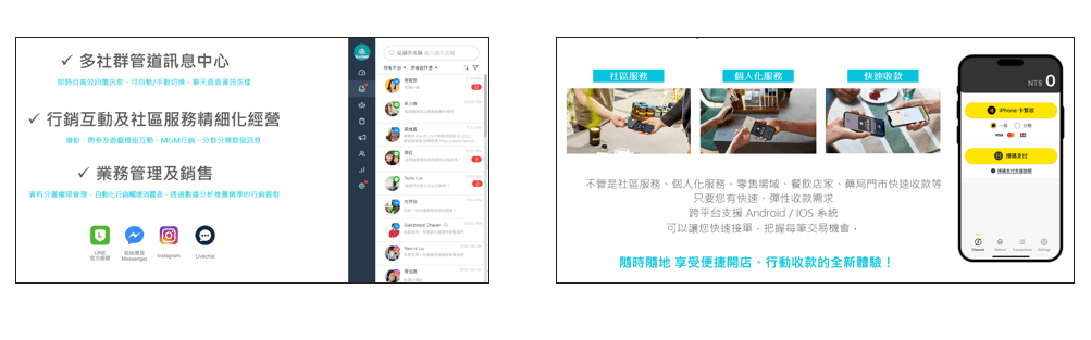 結合社群管理以及收款之服務,達到客流、金流效率之綜效