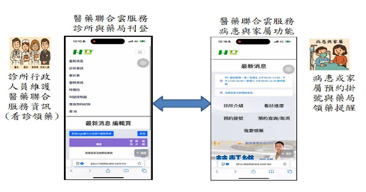 1.診所與藥局聯合服務,提升診所與藥局數位服務能量 2.病患或家屬看診或領藥,可以採線上預約方式,減少群聚與等待 3.分科衛教影片與用藥衛教影片,隨時提醒病患或家屬