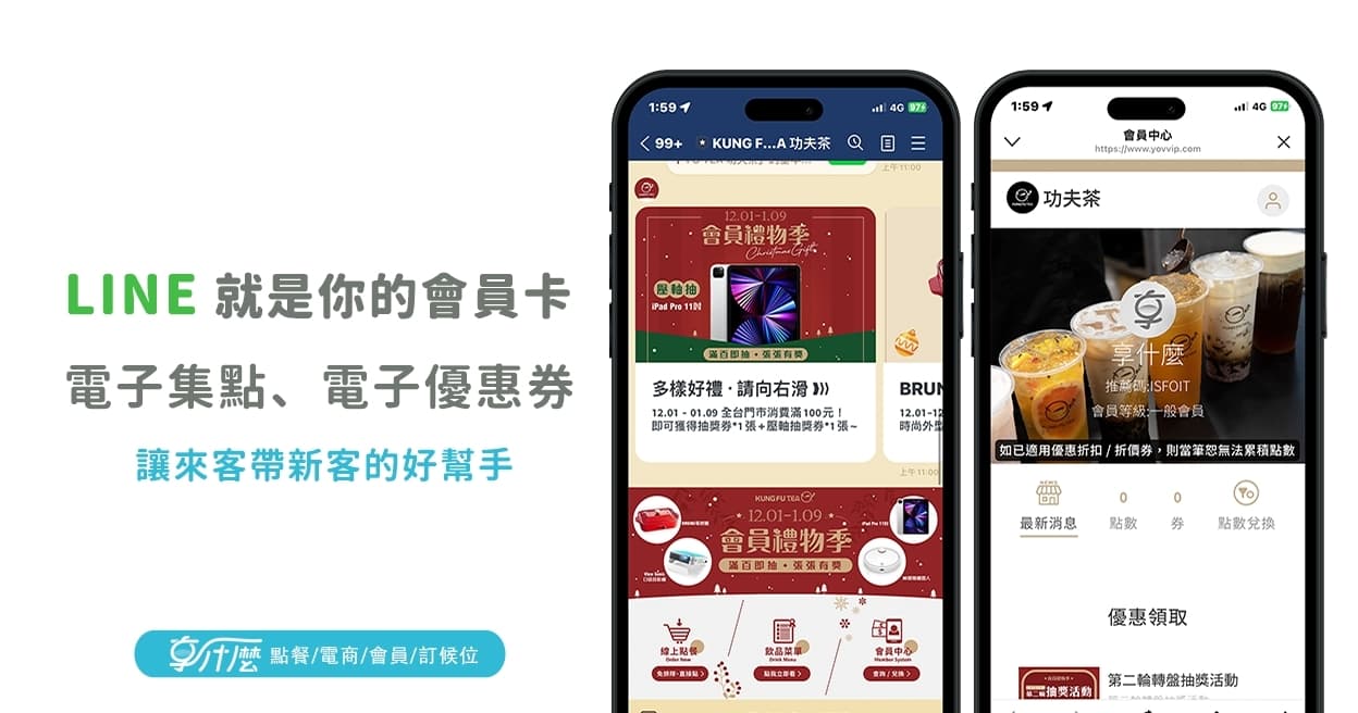 1.整合LINE官方帳號 2.電子集點 3.電子優惠券 4.會員系統 5.到期提醒通知 6.POS串接整合