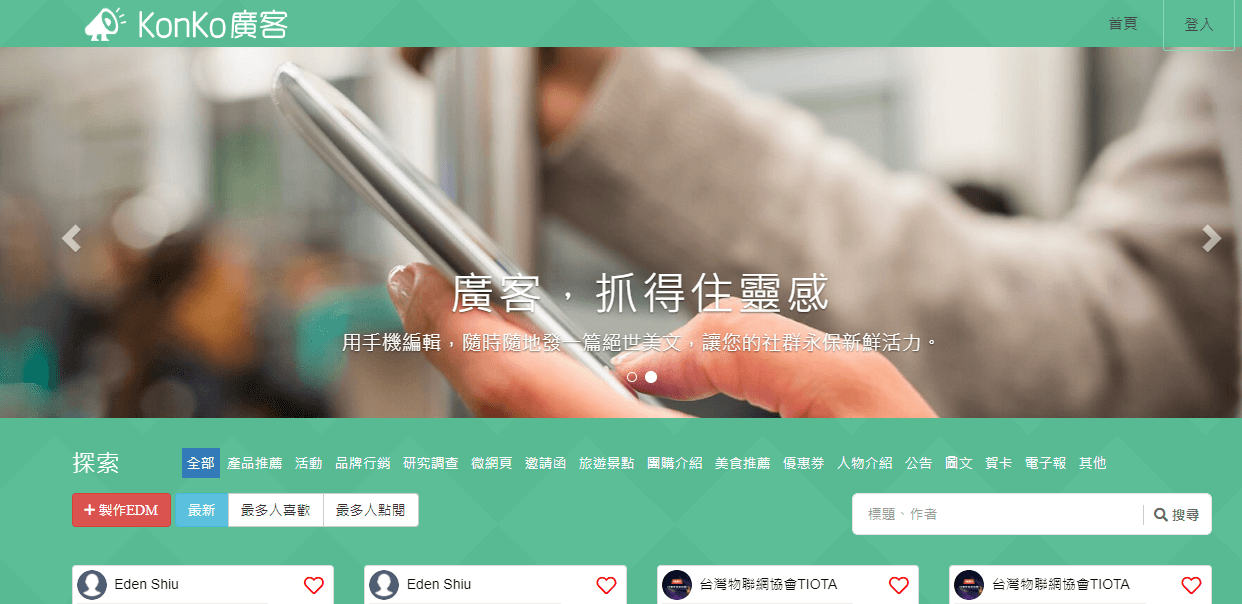 Lale廣客是一套易用易分享的社群圖文編輯平台,非常適合微型企業或創業店家,不須懂技術、不須會美工,只要會用手機或電腦,就絕對會操作,堪稱阿嬤都會的傳單製作平台。 Lale廣客區塊式的操作介面設計,僅需拖拉就能將設計元素更換順序,搭上多元的設計工具,讓您可以自由搭配,舉凡是圖片、文字、輪撥效果、影片插入、背景音樂等。問券蒐集到的資訊,也能自動進行數據分析,產生統計報表。 用Lale廣客設計好的電子傳單,可以透過E-Mail、簡訊、QR-code等多元管道推廣,也可在Lale、FB、微信、Line等社群平台之間分享轉發。在後台能看到EDM點擊率的相關成效,作為調整行銷形式的參考。