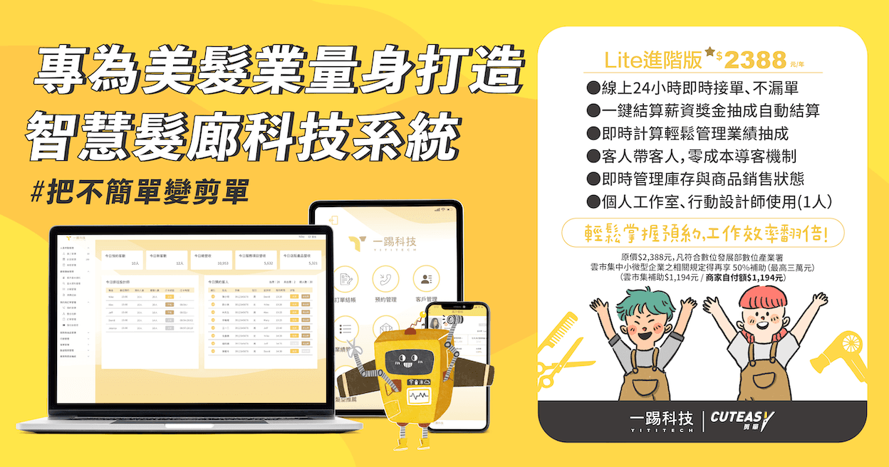 一踢科技主要專注深耕「美髮業」, 該方案適用個人工作室、設計師。 服務業之一的美髮業在這個世代亦注重消費者體驗,受限於大部分商家仍然使用紙本或Excel做簡單客戶管理,市面上雖有一些零星的系統供美髮